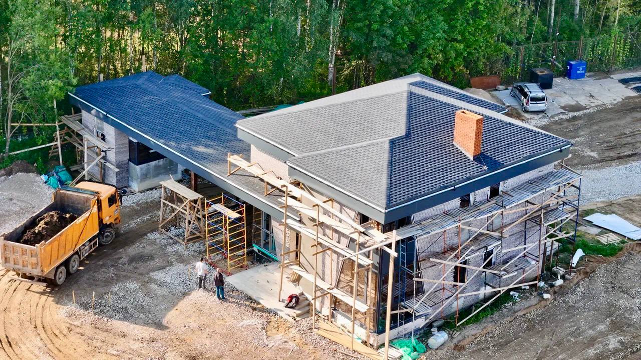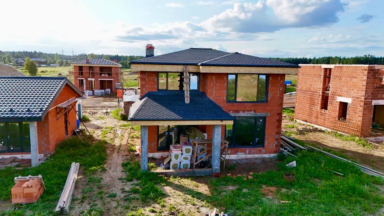 🔵Ведутся работы по облицовке и внутренней отделке пилотных домов